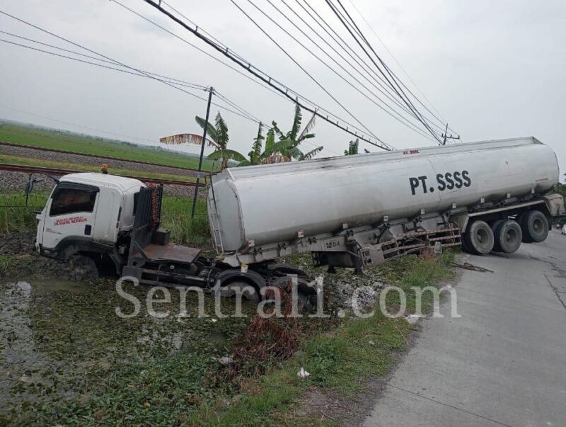 Berdasarkan keterangan di lokasi, armada tangki tersebut melaju dari arah barat menuju timur. Diduga pengemudi kehilangan konsentrasi akibat kelelahan atau mengantuk, sehingga kendaraan keluar jalur ke arah kanan, melintasi marka jalan, lalu masuk ke kubangan air di sisi jalan dengan kedalaman sekitar 50 sentimeter.
