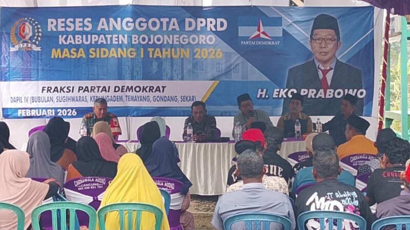 BOJONEGOROSentral1.com – Anggota DPRD Kabupaten Bojonegoro dari Fraksi Partai Demokrat, H. Eko Prabowo, menggelar kegiatan Reses Masa Sidang I Tahun 2026 pada Sabtu (7/2/2026). Kegiatan tersebut dilaksanakan di kediaman Edi Waluyo, Desa Cancung, Kecamatan Bubulan, Kabupaten Bojonegoro.