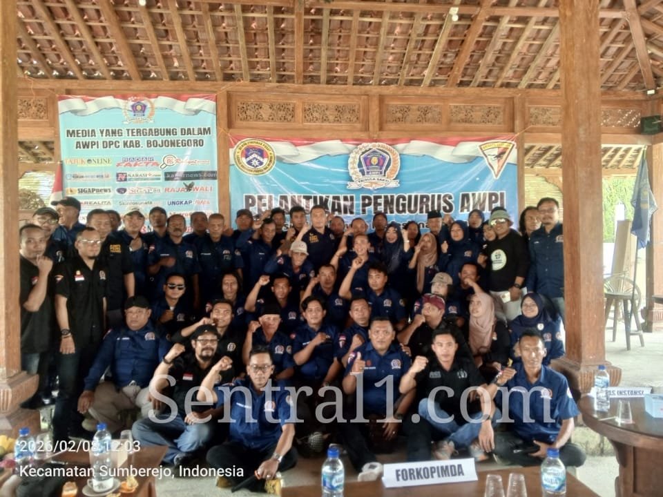 BOJONEGORO – Sentral1.com – Suasana khidmat menyelimuti Pendopo Cafe Bucu, Desa Trucuk, Kecamatan Trucuk, Kabupaten Bojonegoro, saat pelantikan Pengurus Dewan Pimpinan Cabang (DPC) Asosiasi Wartawan Profesional Indonesia (AWPI) Bojonegoro masa bakti 2026–2031, Minggu (8/2/2026).